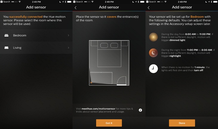 Bạn có thể thiết lập chế độ cảm biến của bóng đèn Philips Hue một cách vô cùng đơn giản bằng cách sử dụng ứng dụng trên điện thoại, vào mục Settings và chọn Accessory setup để khởi động chế độ này.