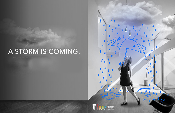 Với ứng dụng điều khiển bóng đèn thông minh Philips Hue, bạn có thể nhận được tín hiệu sấm chớp (qua âm thanh, hoạt động như điều khiển bằng giọng nói) trong mục Thunderstorm. Nghĩa là bóng đèn sẽ tự động nhấp nháy khi nhận âm thanh từ sấm chớp, báo hiệu cho bạn biết là trời sắp mưa đấy! Thật hiện đại!