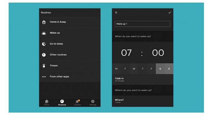 Bạn có thể sử dụng bóng đèn thông minh Philips Hue như một chiếc đồng hồ báo thức. Nghĩa là bạn có thể cài đặt thời gian để điều chỉnh độ sáng của bóng đèn, báo hiệu cho bạn thời điểm thức dậy và đi ngủ ra sao. Để sử dụng tính năng này, bạn thực hiện như sau: