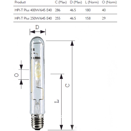 Thông số kỹ thuật của Metal Halide Philips HPI-T 400W: