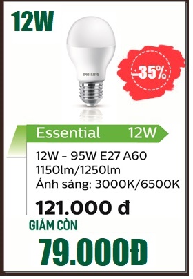 * Combo 12 Bóng đèn Led Bulb Philips 5W E27 6500K 230V A60 APR ánh sáng trắng giúp bạn tiết kiệm ngay lập tức đến 25% chi phí đầu tư.