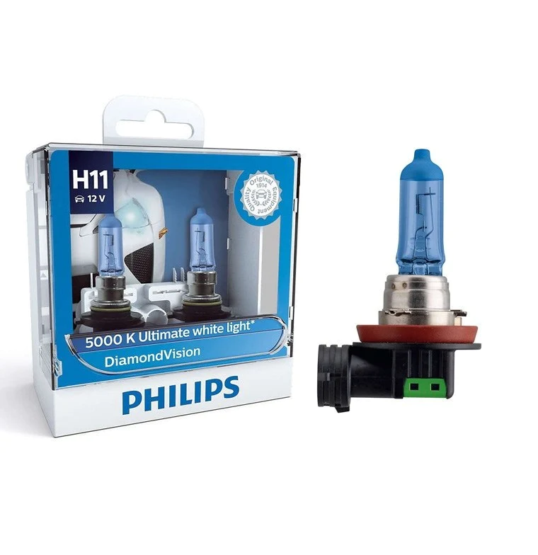 - Đèn pha Philips H11 Diamond Vision khiến chiếc xe của bạn sành điệu và nổi bật hơn với ánh sáng trắng 5000K.