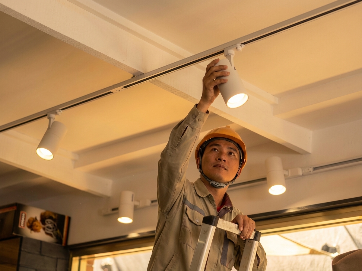 Nhân viên tư vấn khách hàng lựa chọn đèn Led Philips tại công ty Huỳnh Trần