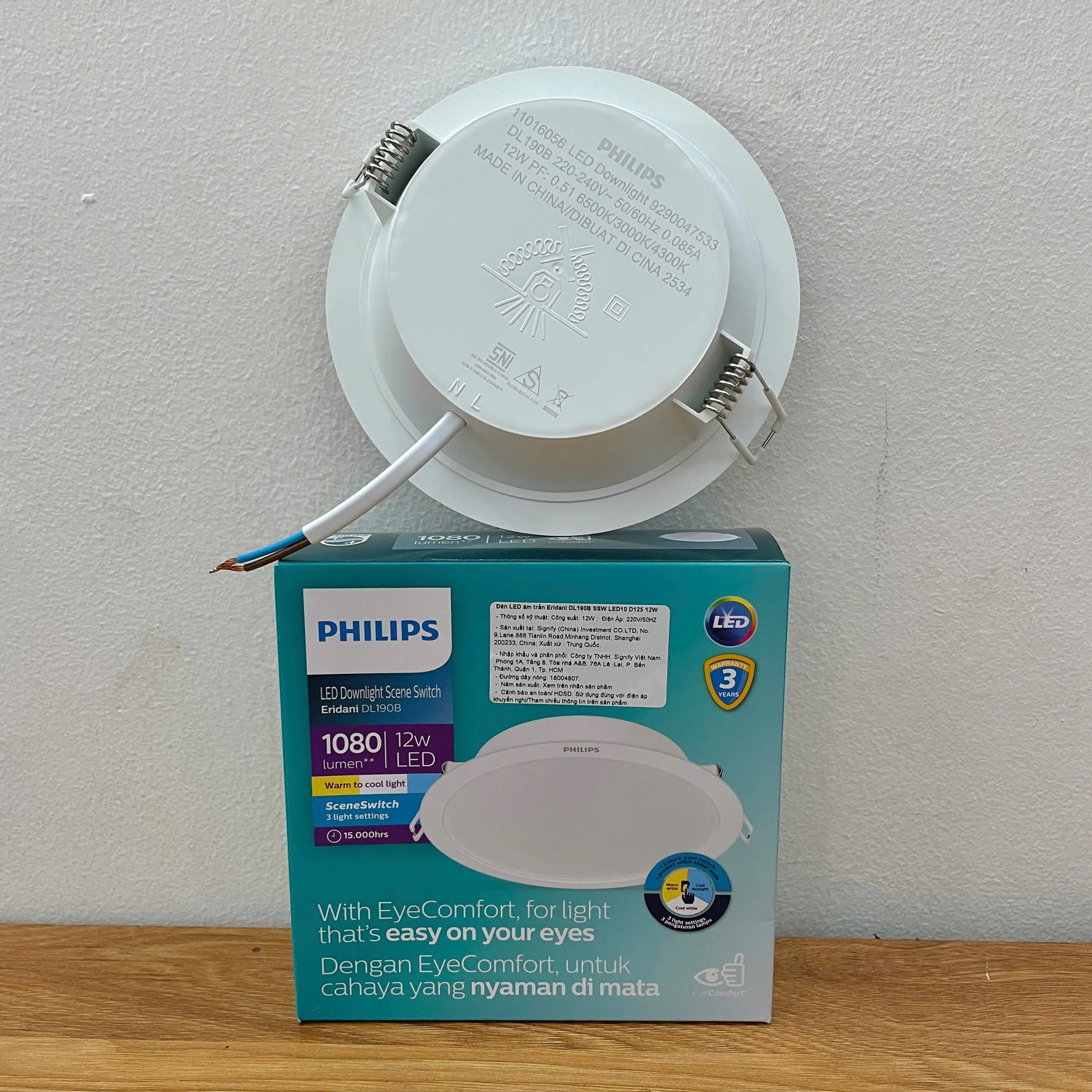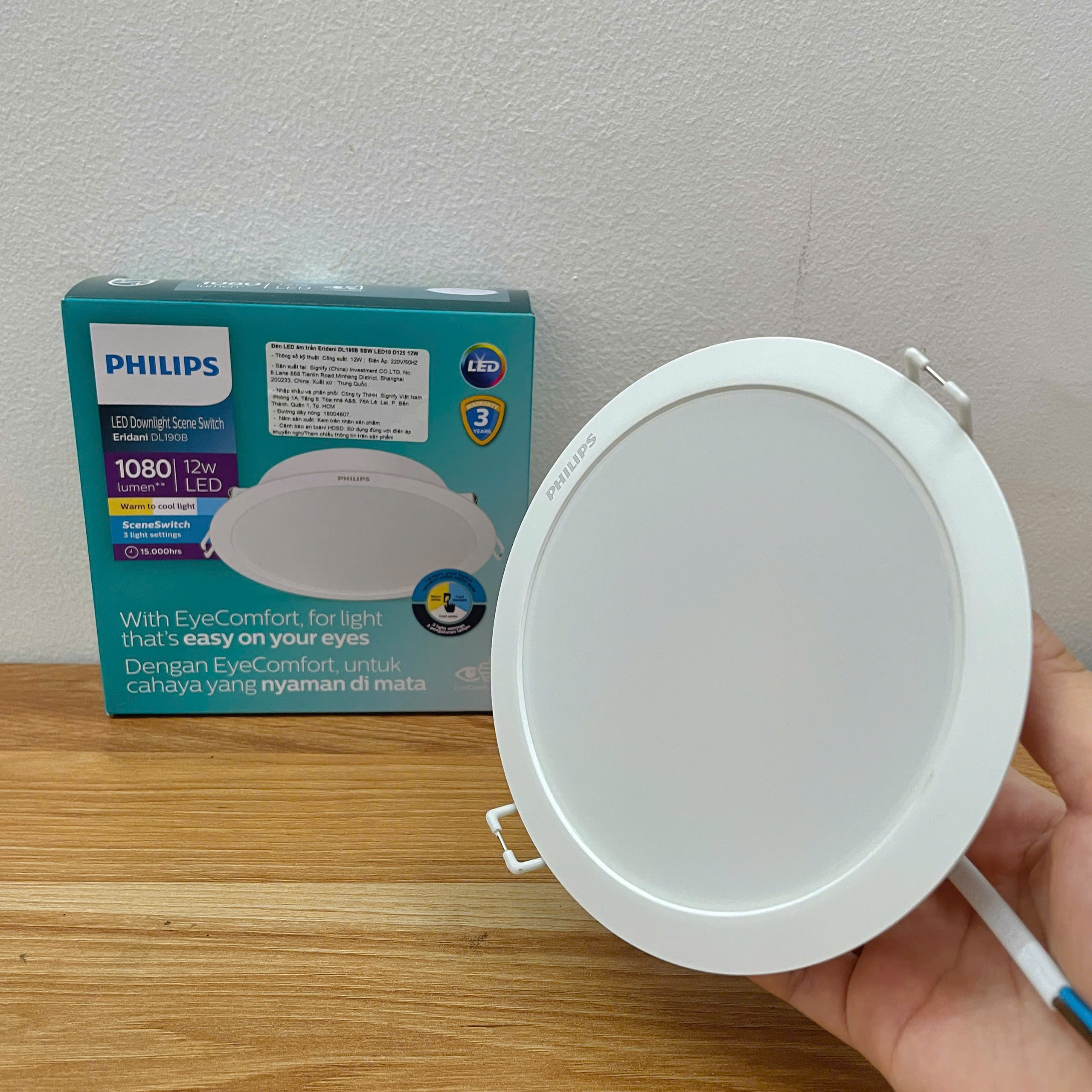 Đèn downlight âm trần đổi màu Led Philips Eridani DL190B SSW: Hiệu suất 12W, quang thông 1080lm.