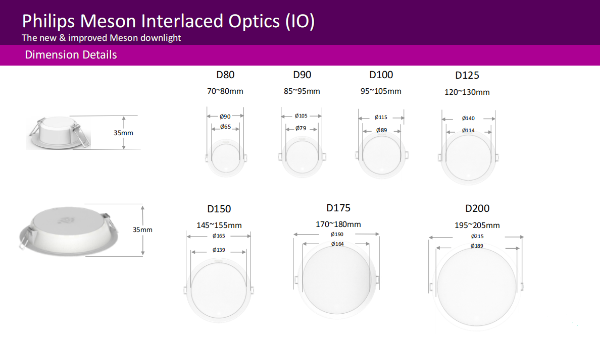 Hiệu suất chiếu sáng vượt trội của Đèn downlight âm trần Philips Meson.