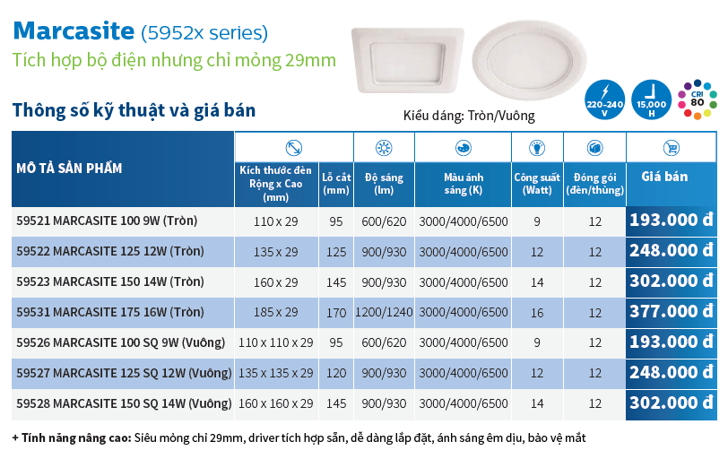 Đèn Led Downlight âm trần có thể là cái tên mà rất nhiều người biết đến nhưng cái tên Marcasite chắc còn rất mới mẻ với nhiều người vì nó là tên của một sản phẩm nằm trong những sản phẩm mới được ra mắt gần đây của hãng đèn nổi tiếng Philips.