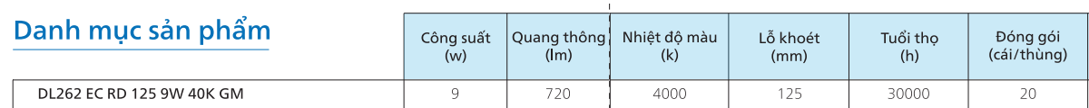 Thông số kỹ thuật bóng đèn LED âm trần siêu mỏng Philips Meson Max DL262 EC RD 125 9W 40K GM