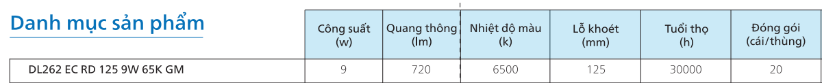 Thông số kỹ thuật bóng đèn LED âm trần siêu mỏng Philips Meson Max DL262 EC RD 125 9W 65K GM