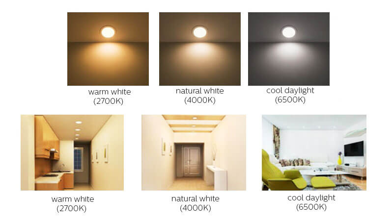 Các loại bóng đèn hiện nay có thể tạo ra ánh sáng với nhiều màu sắc khác nhau từ vàng (Warm White), trung tính (Neutral White) đến trắng (Cool Daylight). Màu của ánh sáng được thể hiện qua đại lượng là nhiêt độ màu có đơn vị là Kenvin (K).