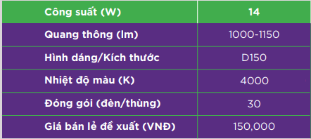 - Đèn LED công suất cao, nguồn sáng tối ưu, chỉ số hoàn màu CRI80 mang lại màu sắc sống động cho không gian nhà ở.