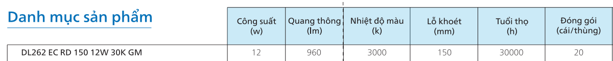 Thông số kỹ thuật đèn LED âm trần siêu mỏng Philips Meson Max DL262 EC RD 150 12W 30K GM
