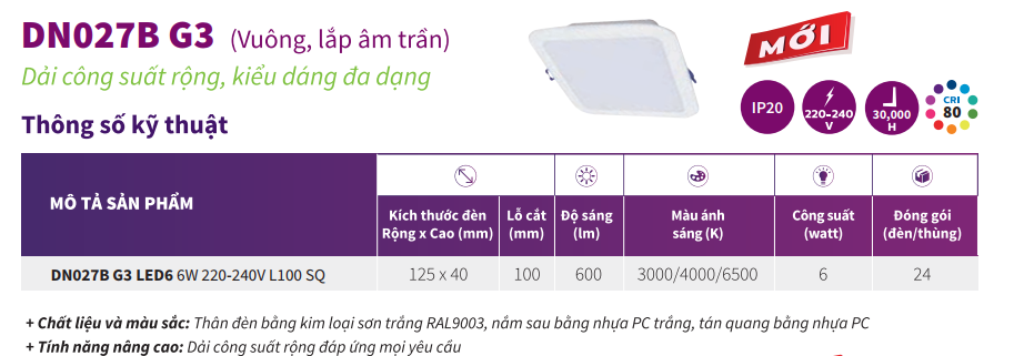 Ứng dụng: Đèn led âm trần vuông Philips DN027B G3 LED6/WW 6W 220-240V L100 SQ là một sản phẩm chiếu sáng hiện đại và tiết kiệm năng lượng của Philips. Sản phẩm có thiết kế vuông đẹp mắt, phù hợp cho nhiều không gian như nhà ở, văn phòng, cửa hàng, nhà hàng, khách sạn. Sản phẩm có thể sử dụng để chiếu sáng chung.