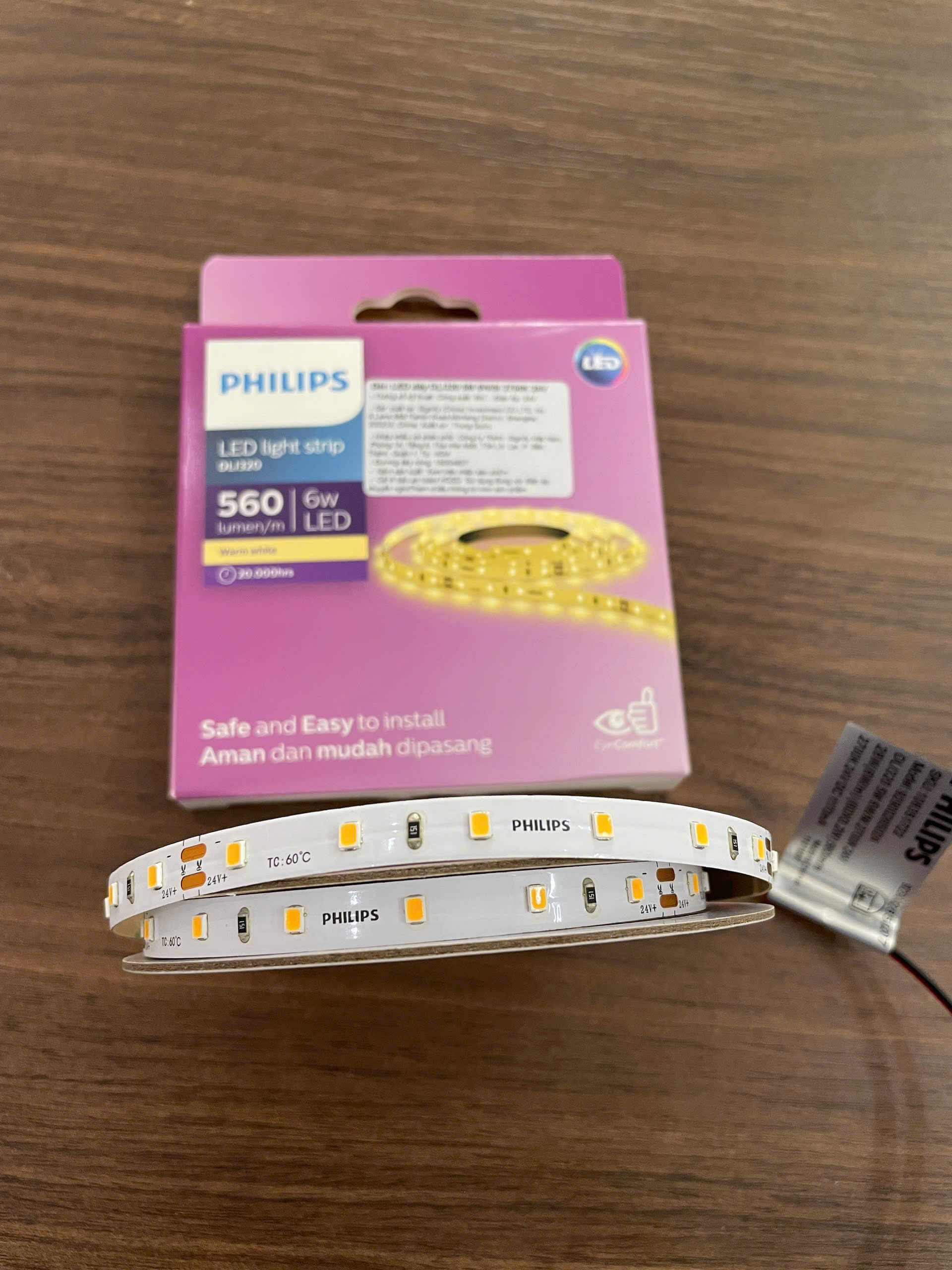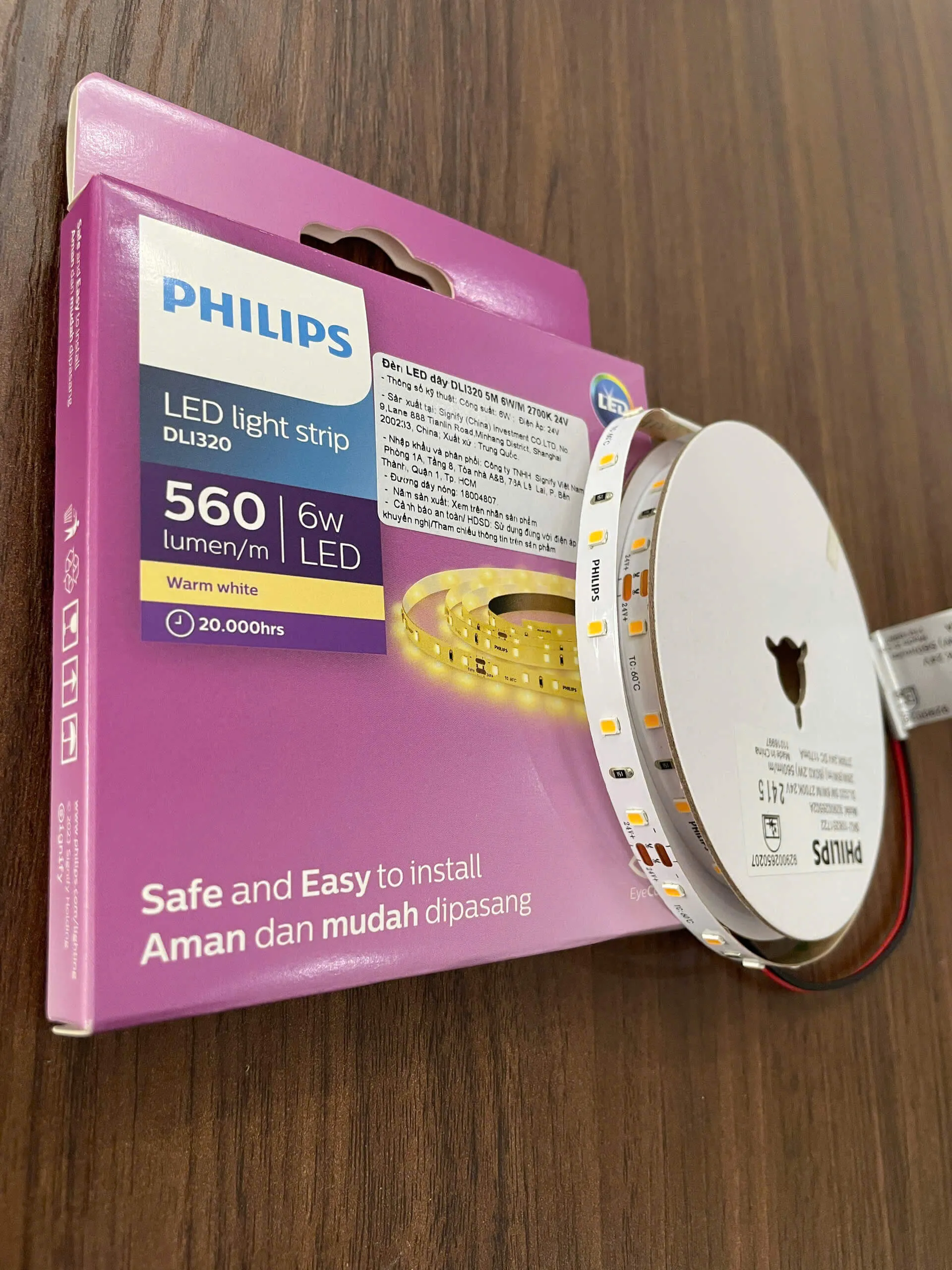 Tìm hiểu công suất 6W/mét, quang thông 560 Lumen của Đèn trang trí LED dây Philips DLI320 5M 6W/M 2700K 560LM 24V. An toàn 24V, hiệu quả năng lượng.
