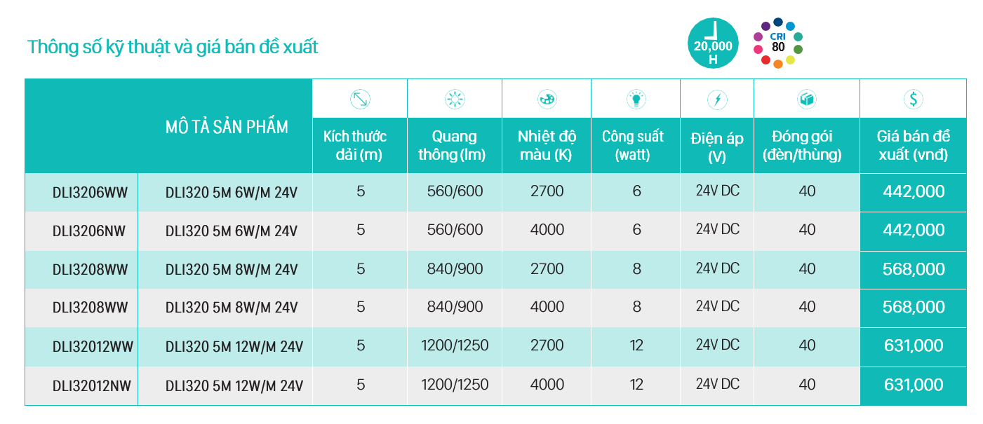 Thông số kỹ thuật bền vững của Đèn trang trí LED dây Philips DLI320.