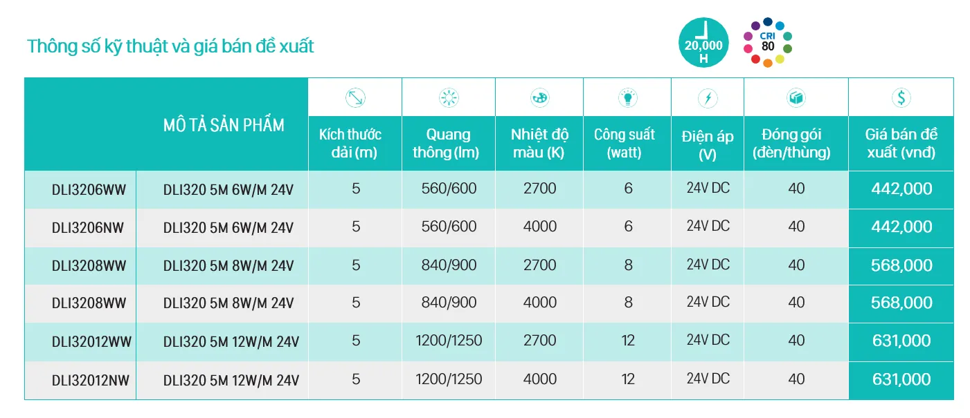 Thông số kỹ thuật cao cấp của Đèn trang trí LED dây Philips DLI320.