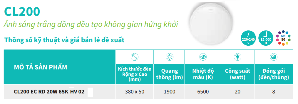 Thông số kỹ thuật đèn LED ốp trần Philips CL200 EC RD 20W HV 02