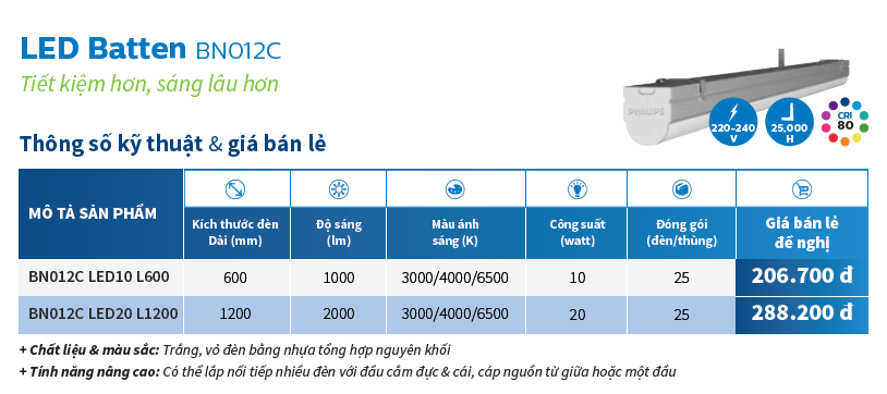 Ngoài ra, đèn Led ốp trần Batten Philips đạt các tiêu chí Quốc tế về sản phẩm chiếu sáng theo chuẩn RoHs tốt cho sức khỏe các thành viên trong gia đình.
