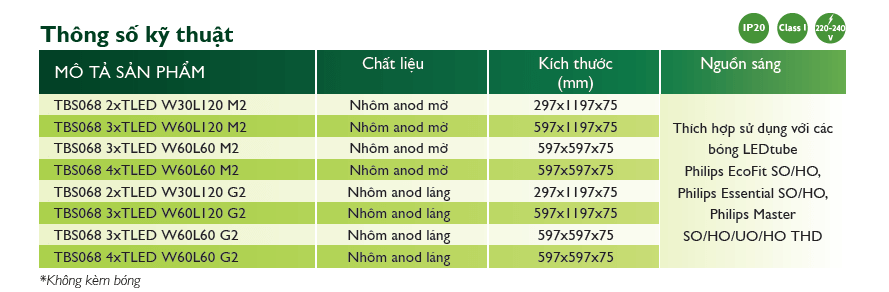Thông số kỹ thuật máng đèn âm trần Led Philips TBS068 2xTLED W30L120 G2
