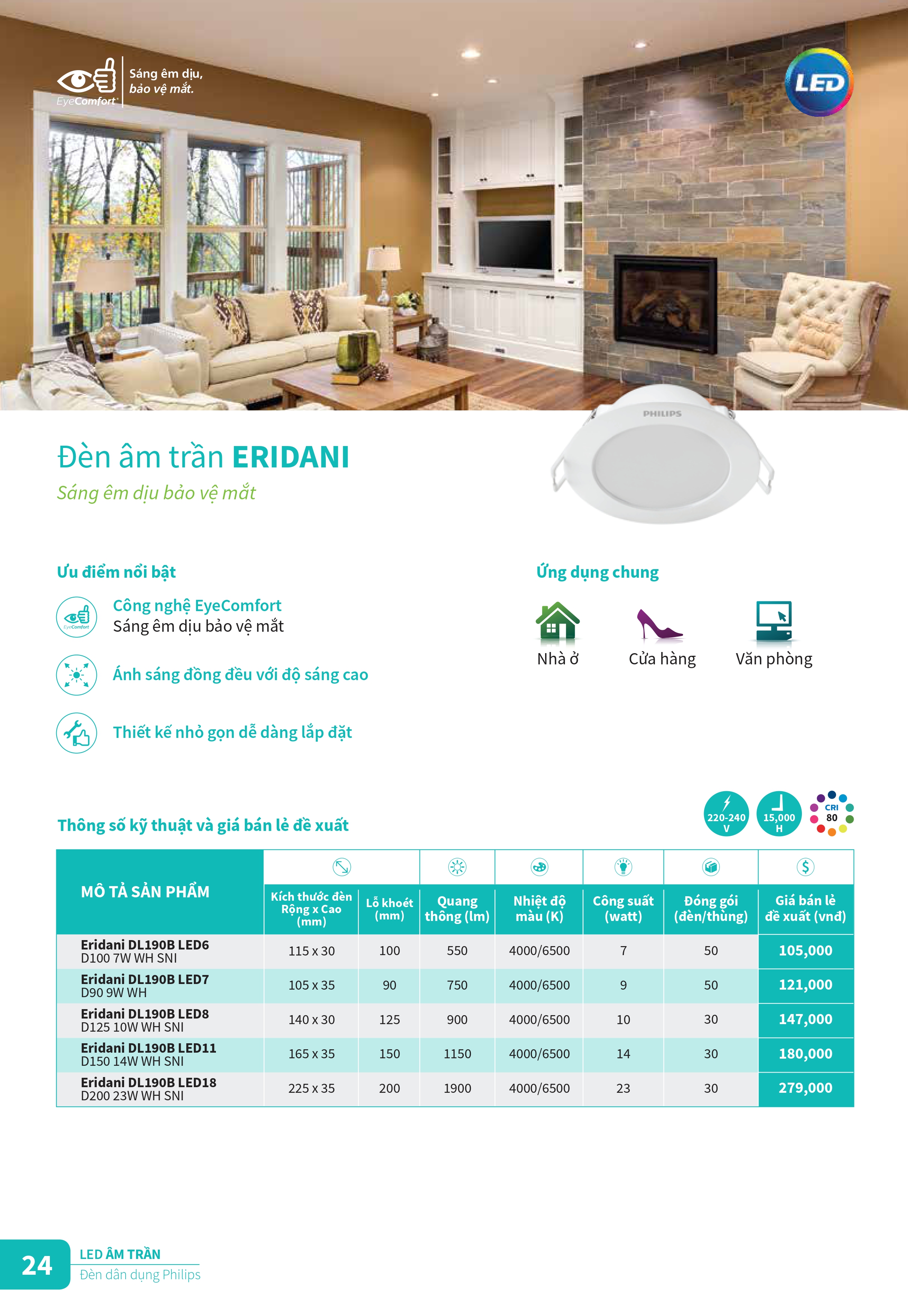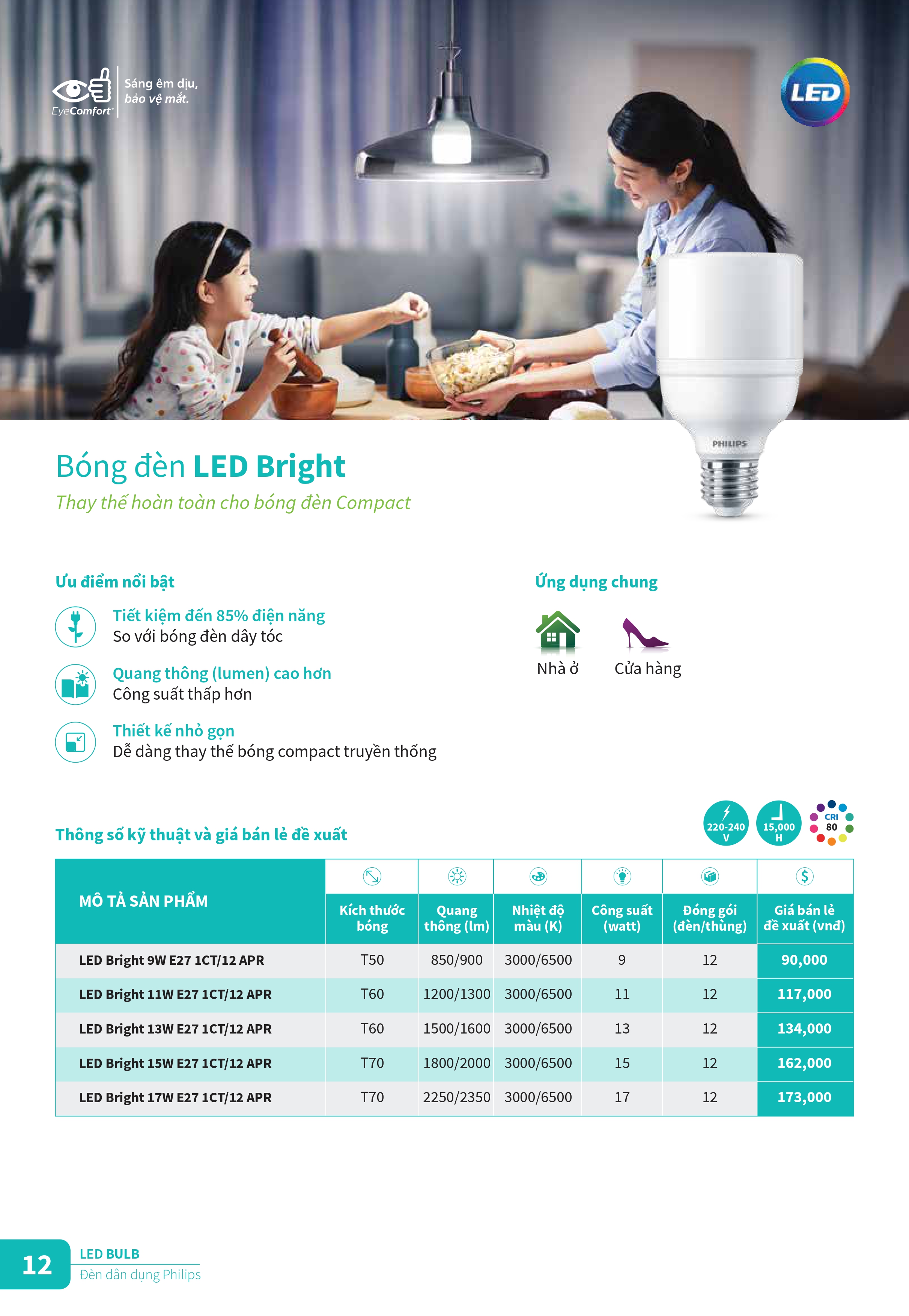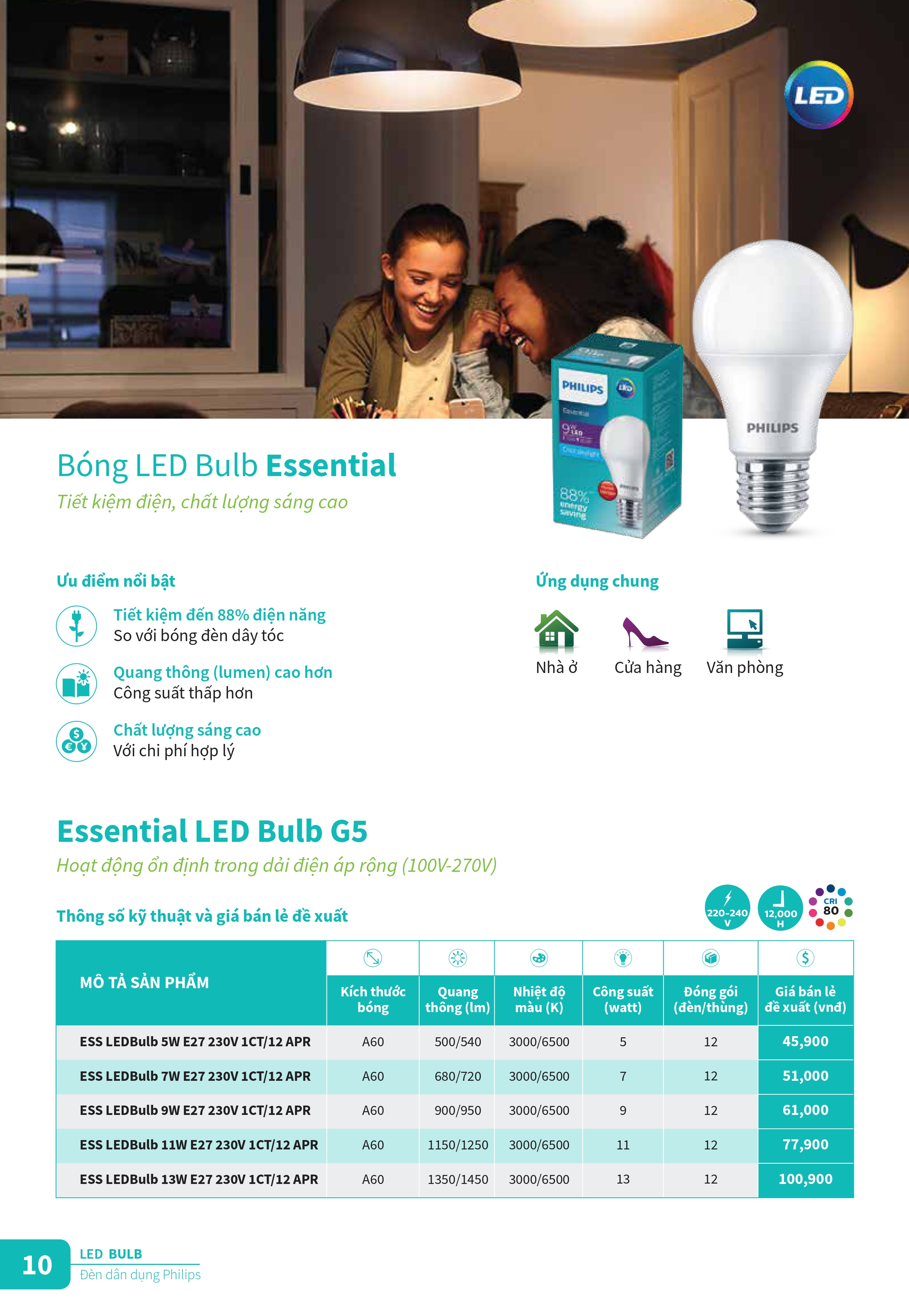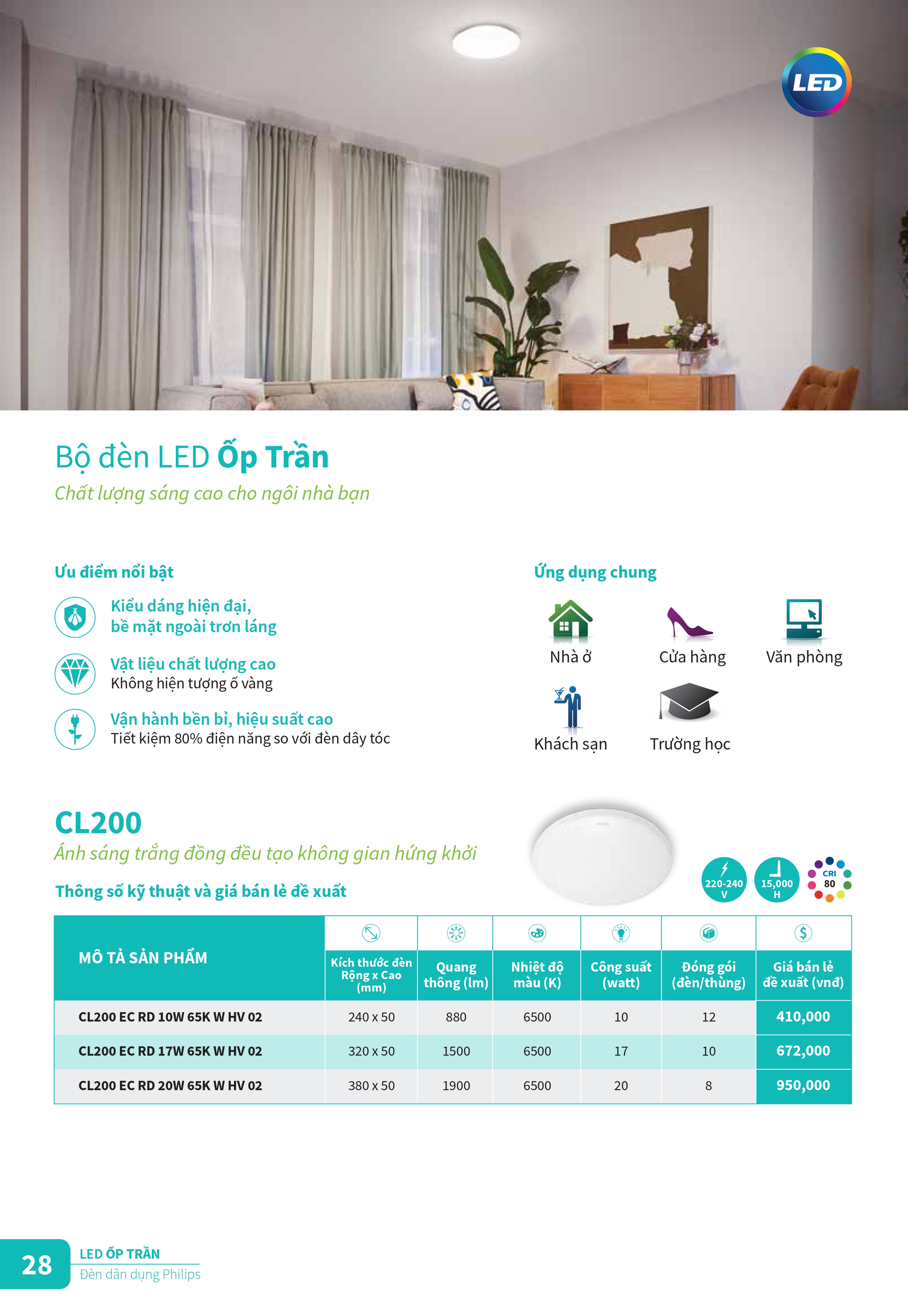 Khám phá các sản phẩm đèn chiếu sáng và thiết vị điện công tắc ổ cắm mới của Philips để tân trang cho ngôi nhà của bạn trong những ngày cuối năm. Catalogue Bảng giá danh mục sản phẩm đèn Philips cung cấp đầy đủ các loại bóng đèn led, đèn âm trần Led, máng đèn Led, đèn Led dây ... và các sản phẩm thiết bị điện, công tắc ổ cắm cải tiến với thiết kế tinh gọn, đơn giản và sang trọng cho ngồi nhà của bạn. Đèn Led Philips mang đến nhiều trải nghiệm chiếu sáng thú vị hơn, ánh sáng tốt hơn và khả năng tiết kiệm năng lượng đến 90%, đem đến kết quả kinh doanh ngoài mong đợi.