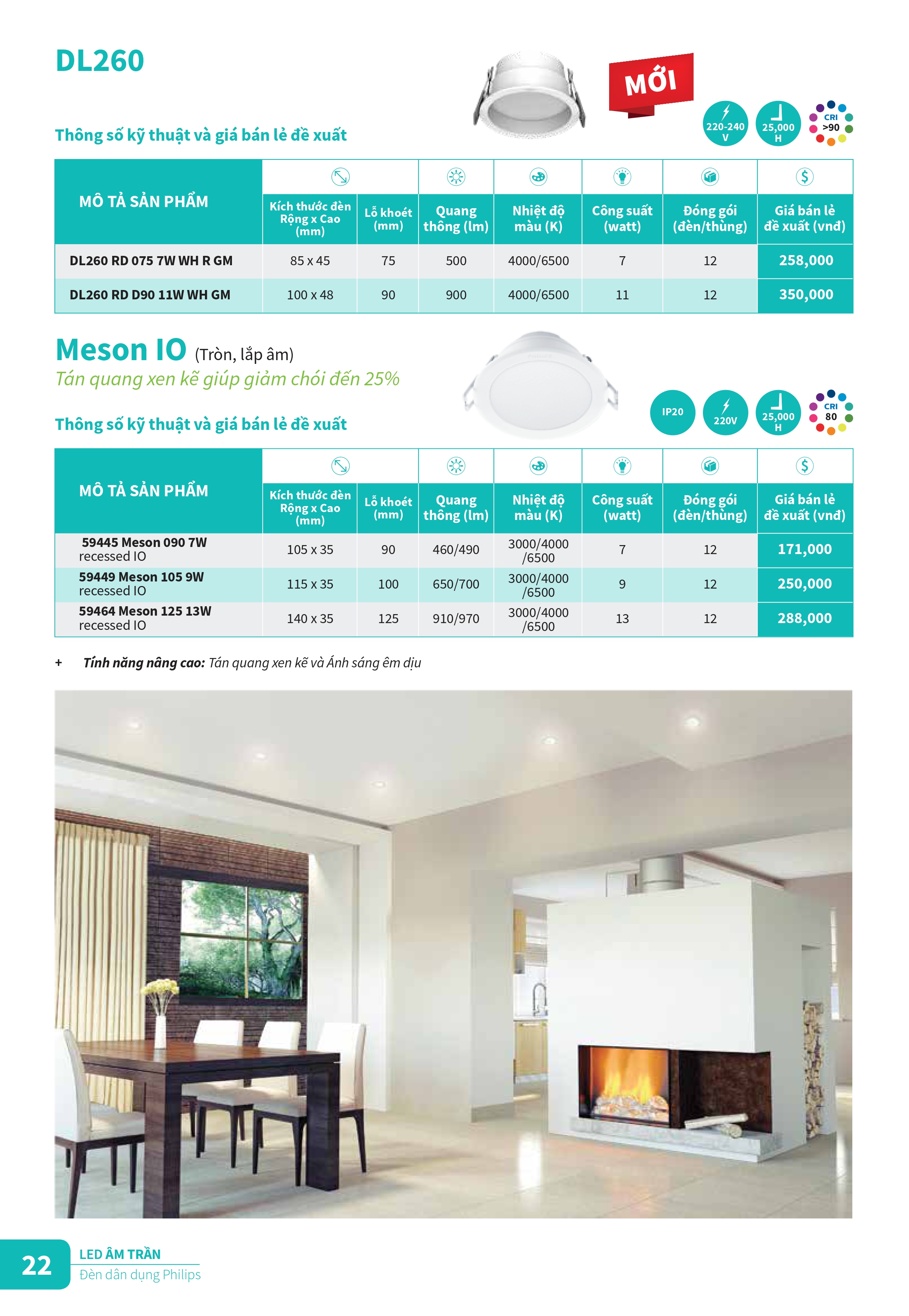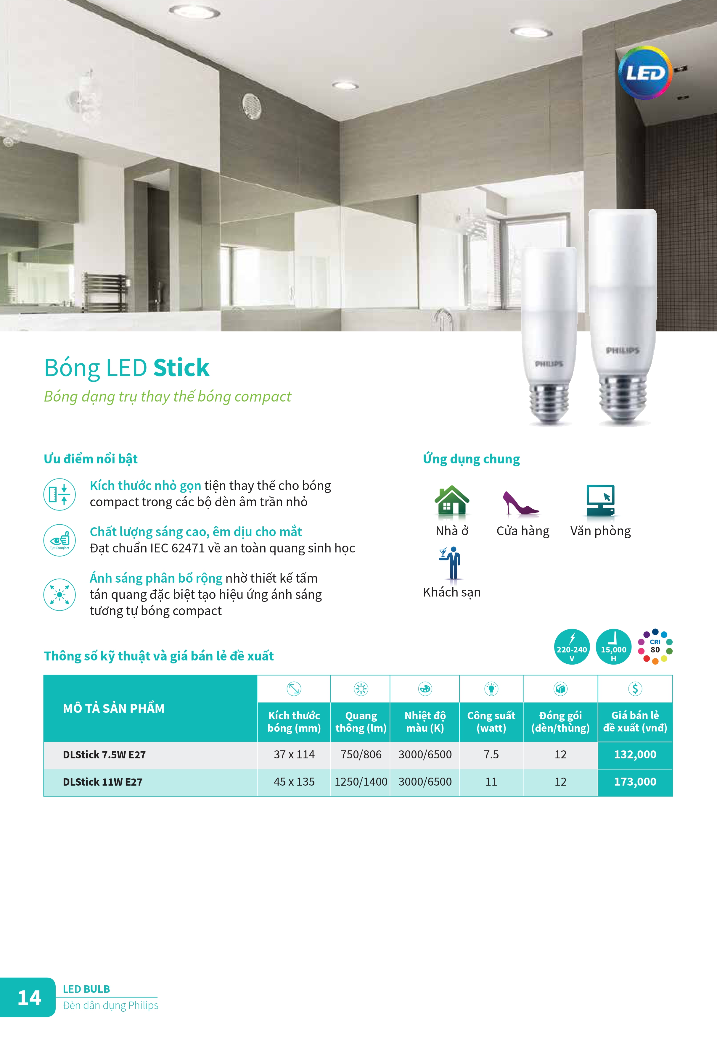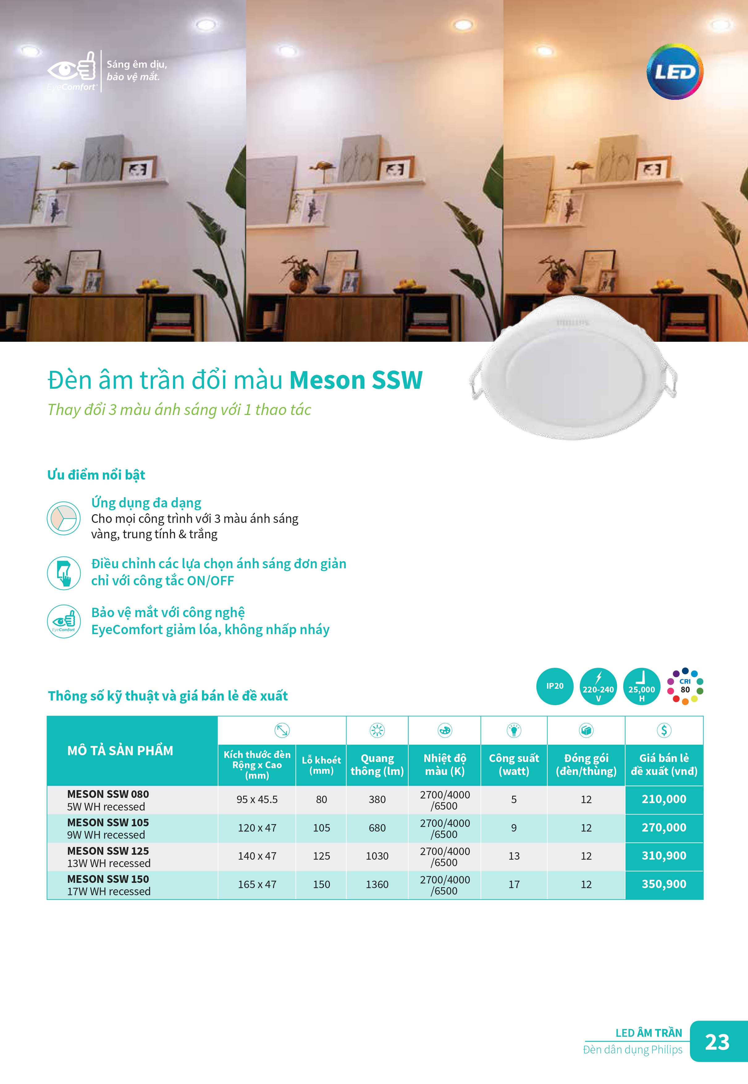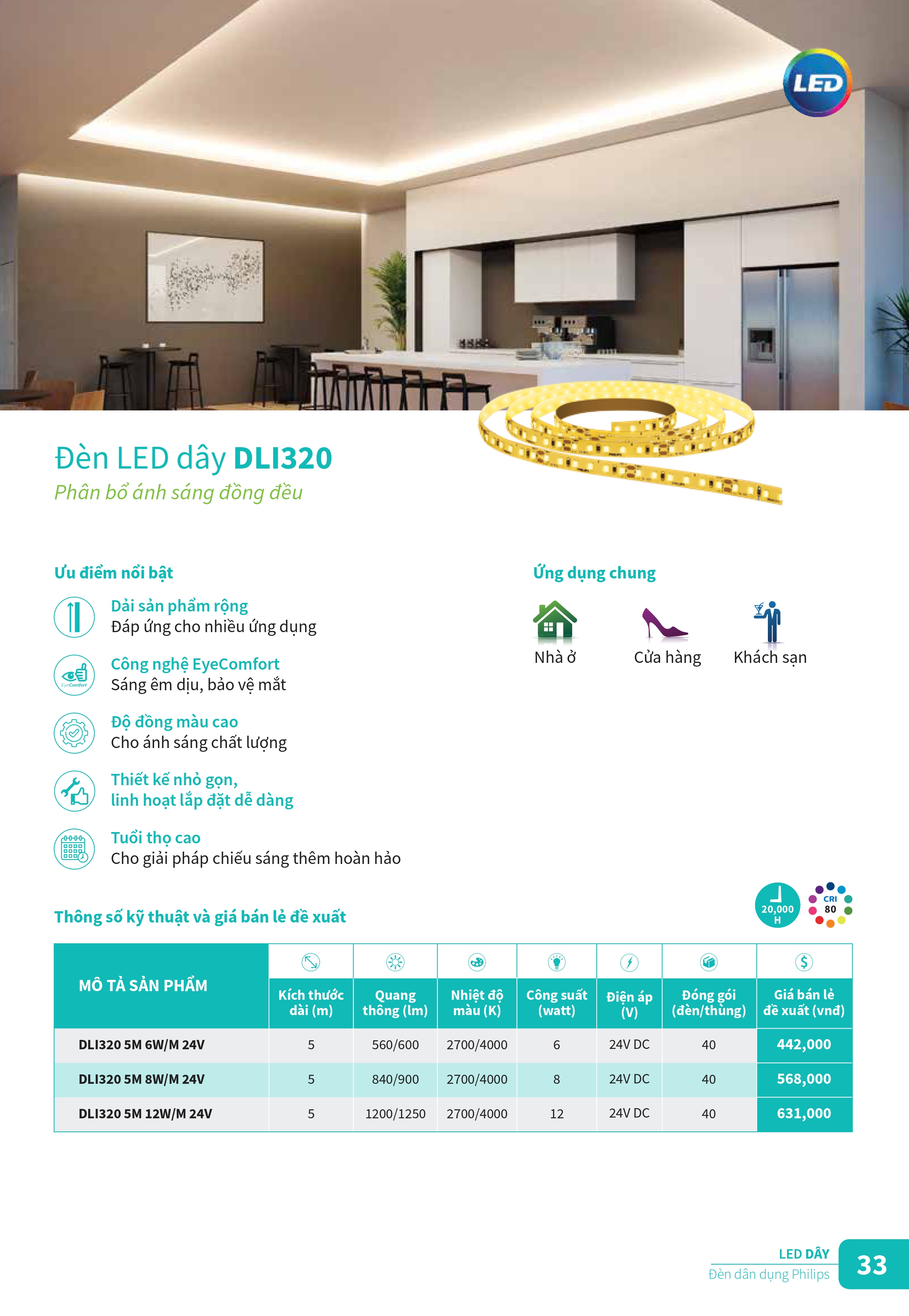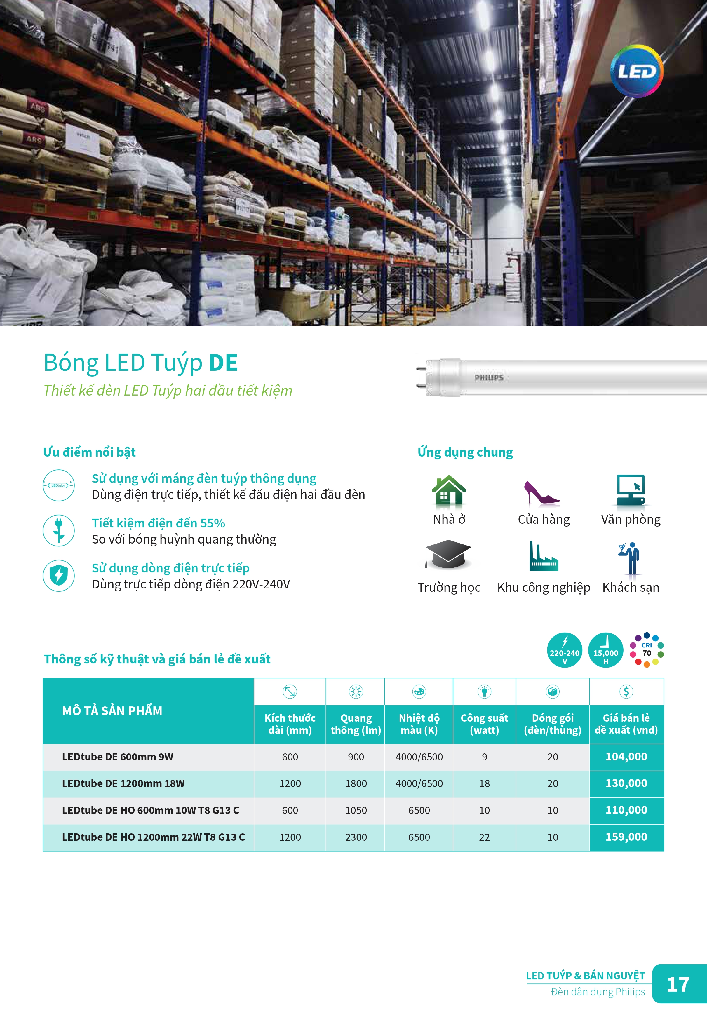 Khám phá các sản phẩm đèn chiếu sáng và thiết vị điện công tắc ổ cắm mới của Philips để tân trang cho ngôi nhà của bạn trong những ngày cuối năm. Catalogue Bảng giá danh mục sản phẩm đèn Philips cung cấp đầy đủ các loại bóng đèn led, đèn âm trần Led, máng đèn Led, đèn Led dây ... và các sản phẩm thiết bị điện, công tắc ổ cắm cải tiến với thiết kế tinh gọn, đơn giản và sang trọng cho ngồi nhà của bạn. Đèn Led Philips mang đến nhiều trải nghiệm chiếu sáng thú vị hơn, ánh sáng tốt hơn và khả năng tiết kiệm năng lượng đến 90%, đem đến kết quả kinh doanh ngoài mong đợi.