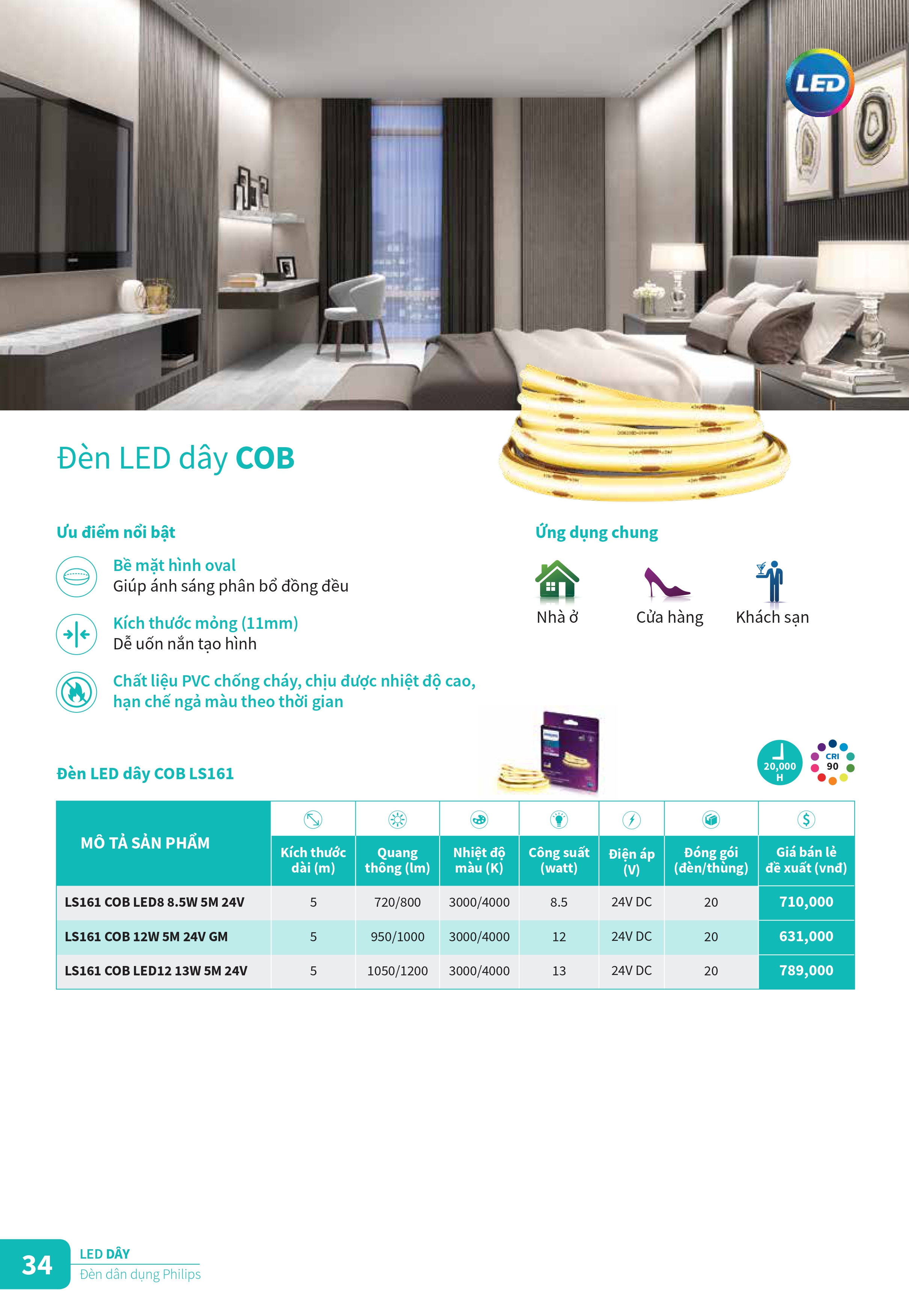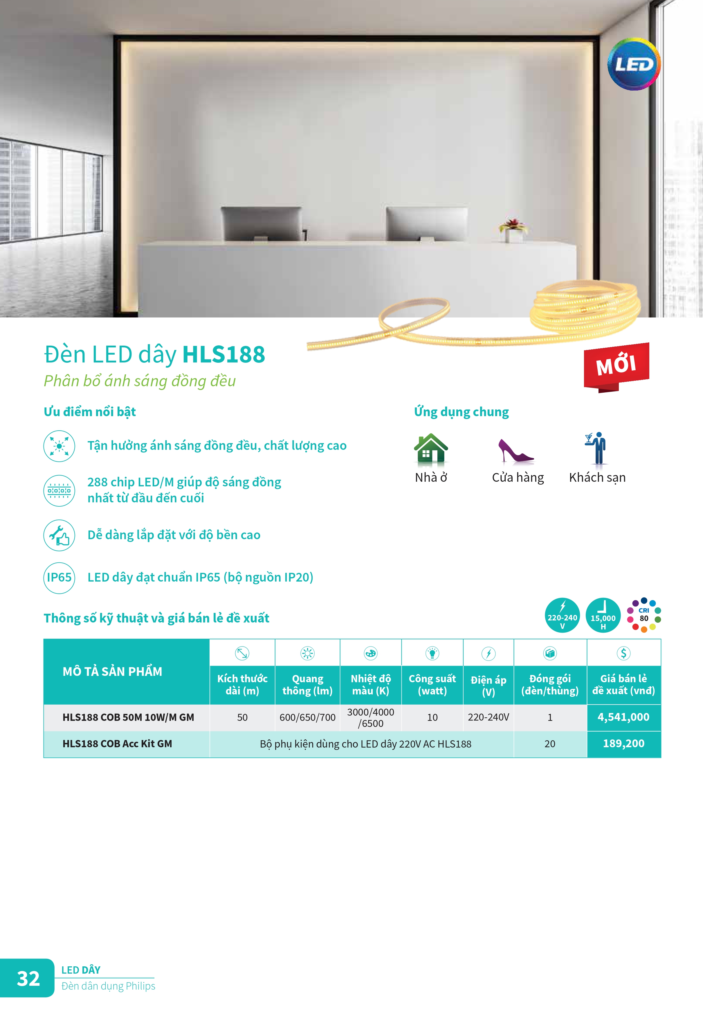 2. Bảng giá đèn LED dây Philips.