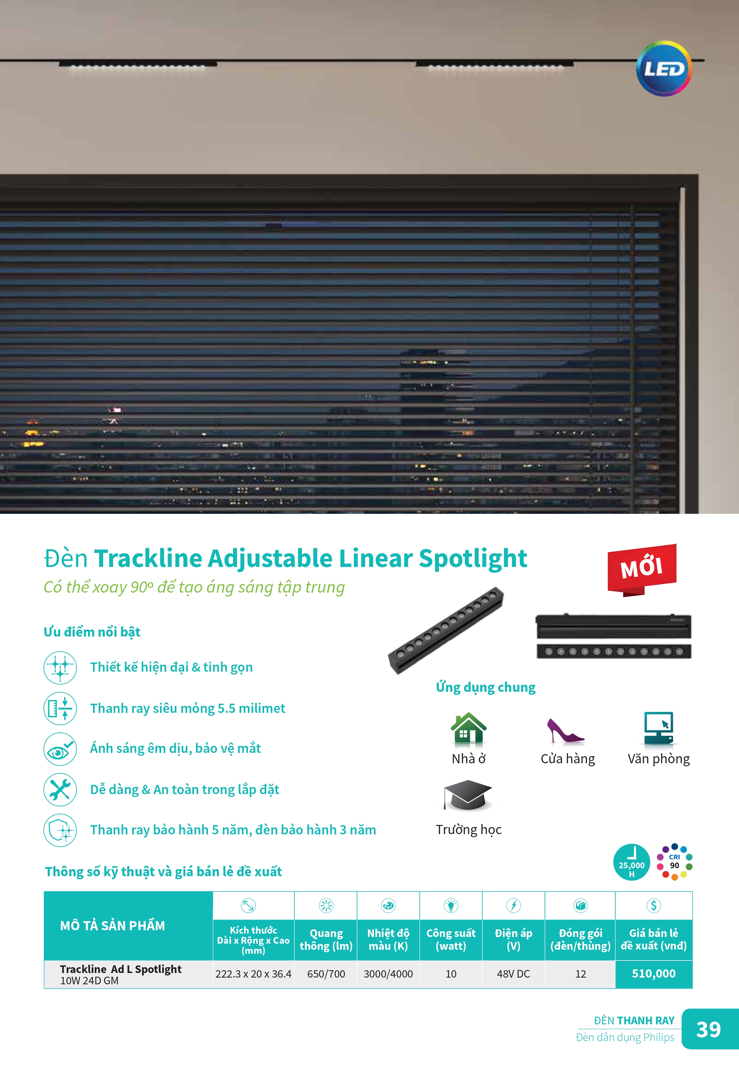6. Giá đèn LED thanh ray Philips (MỚI)