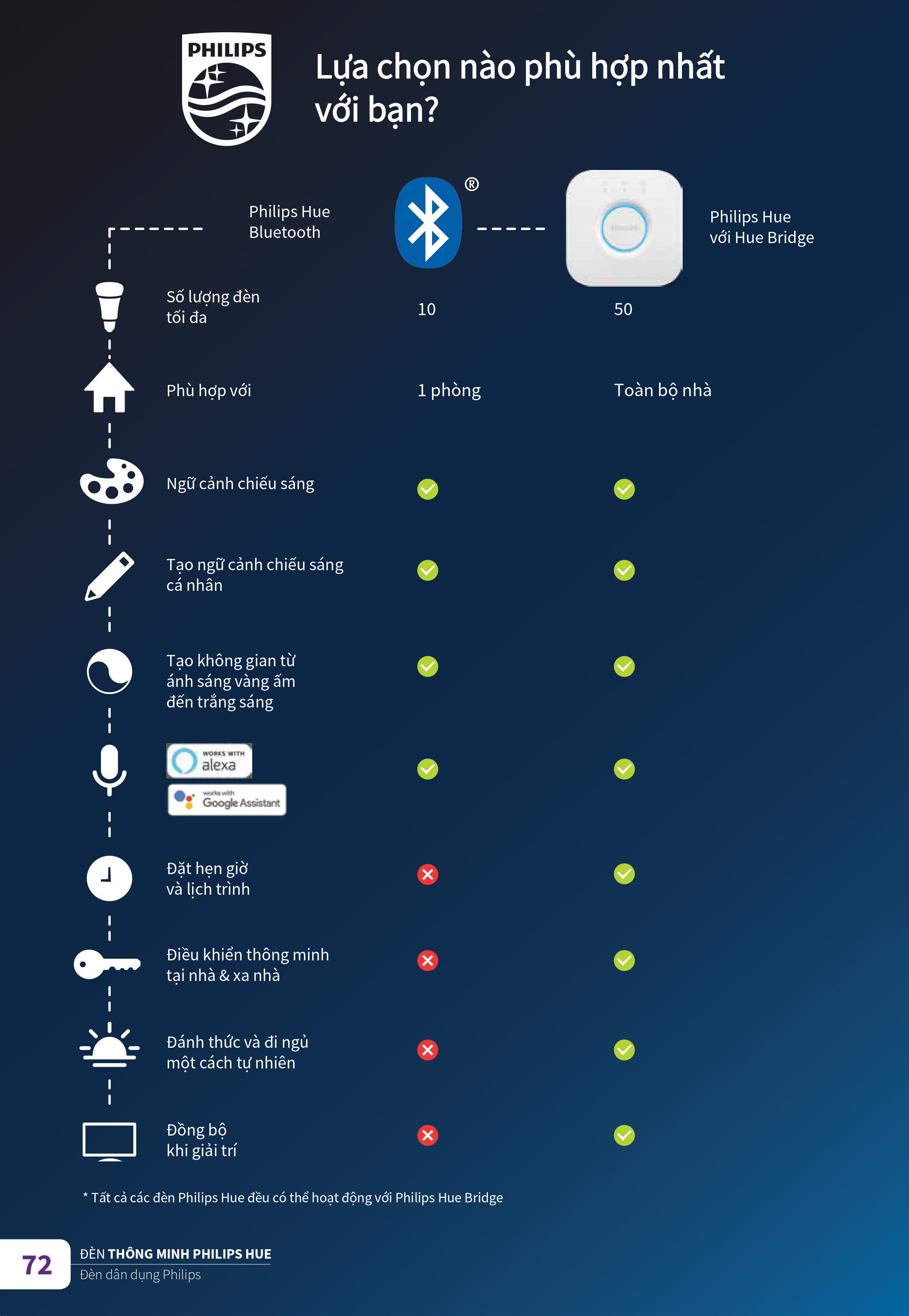 Sản phẩm đèn Led Philips đa dạng về mẫu mã, kiểu dáng, kích thước và chủng loại đáp ứng cho bất kỳ nhu cầu chiếu sáng từ nhà ở, văn phòng, đường phố, nhà xưởng đến ô tô và bất kỳ nơi nào bạn muốn. Chúng tôi có mọi thứ bạn cần, cho dù bạn muốn tạo bầu không khí hoàn hảo cho không gian sống của mình, tạo năng lượng cho khu vực làm việc, khám phá cách thêm màu sắc vào không gian, làm đồ trang trí hay đơn giản là tiết kiệm năng lượng và giảm chi phí hóa đơn cho gia đình. Bạn sẽ không còn gặp khó khăn khi chọn loại đèn phù hợp nhất.