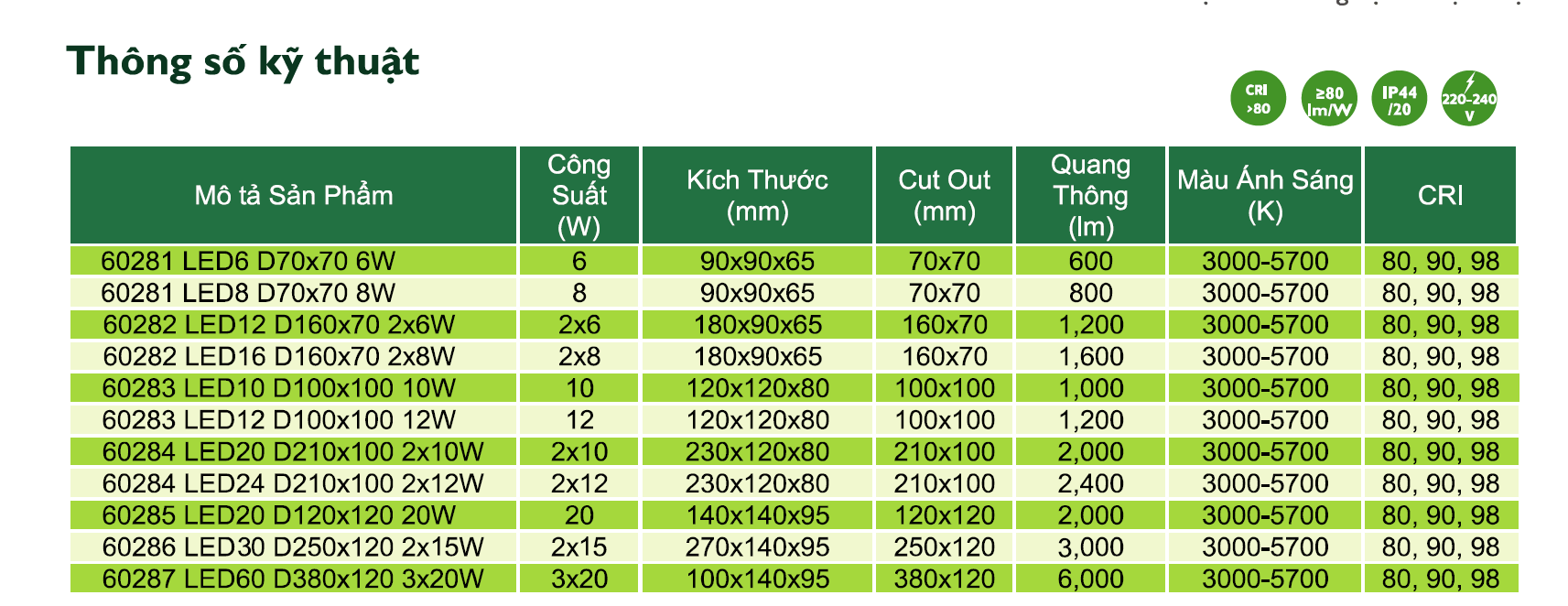 Thông số kỹ thuật đèn downlight âm trần LED Philips Inside chiếu sáng trong nhà 6028X