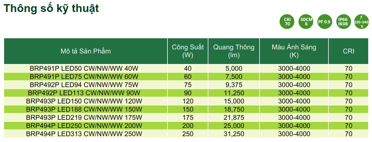 Thông số kỹ thuật đèn Led chiếu sáng đường phố Philips Inside Street Lighting BRP49XP