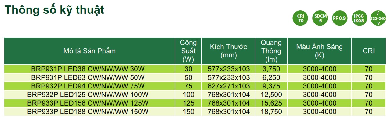 Thông số kỹ thuật đèn LED chiếu sáng đường phố Philips Inside Street Lighting BRP93XP